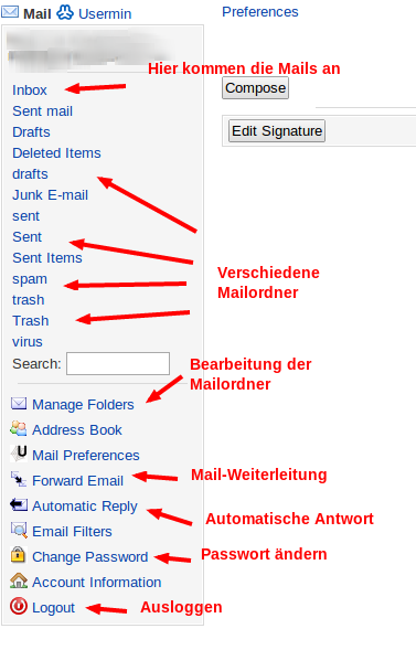 Sollten Sie also Einstellungen vornehmen wollen und nicht „nur“ E-Mails lesen, dann können Sie das nur über den Usermin.