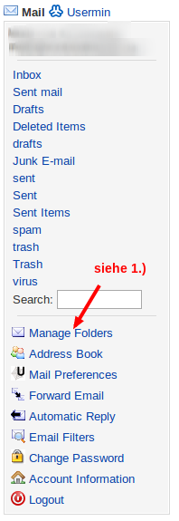 Das Menü befindet sich auf der linken Seite des Webmailers (siehe Bild).